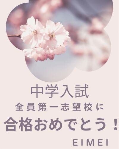 来ました〜!! 中学入試の結果が出揃いました〜!! 見事! 全員第一志望校に合格! 素晴らしいですねーーー!! 中学受験を始めたのはそれぞれの学年でした。 いちばん遅い生徒で6年生になる前でした。 いちばん早い生徒はエイメイに3年生の頃から通ってく…